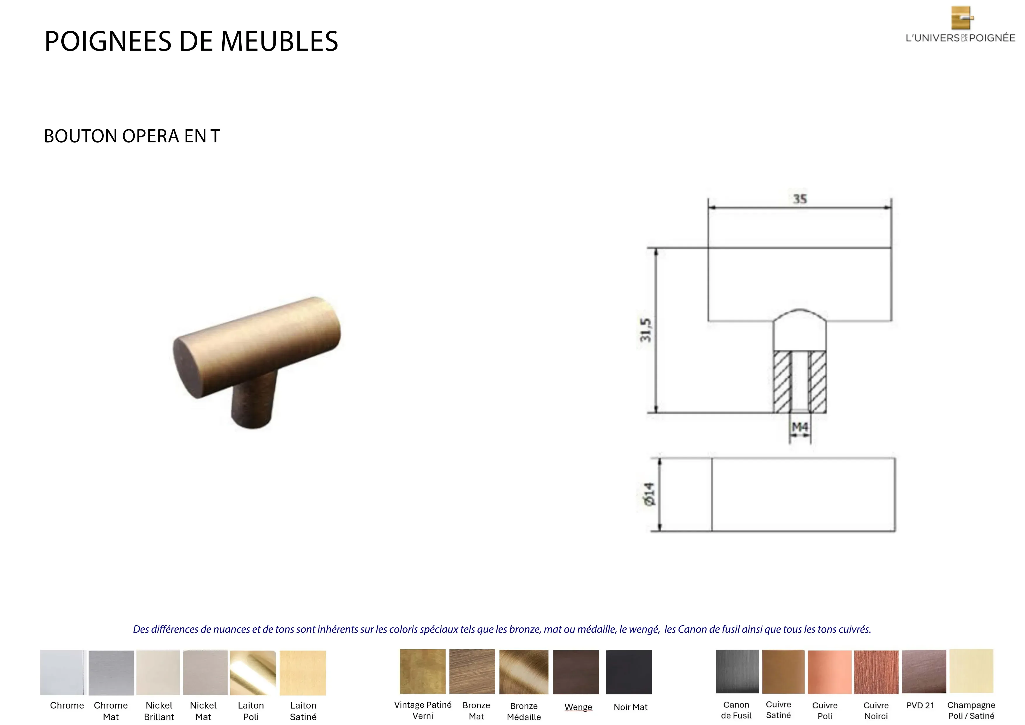 Bouton de meuble OPERA en T