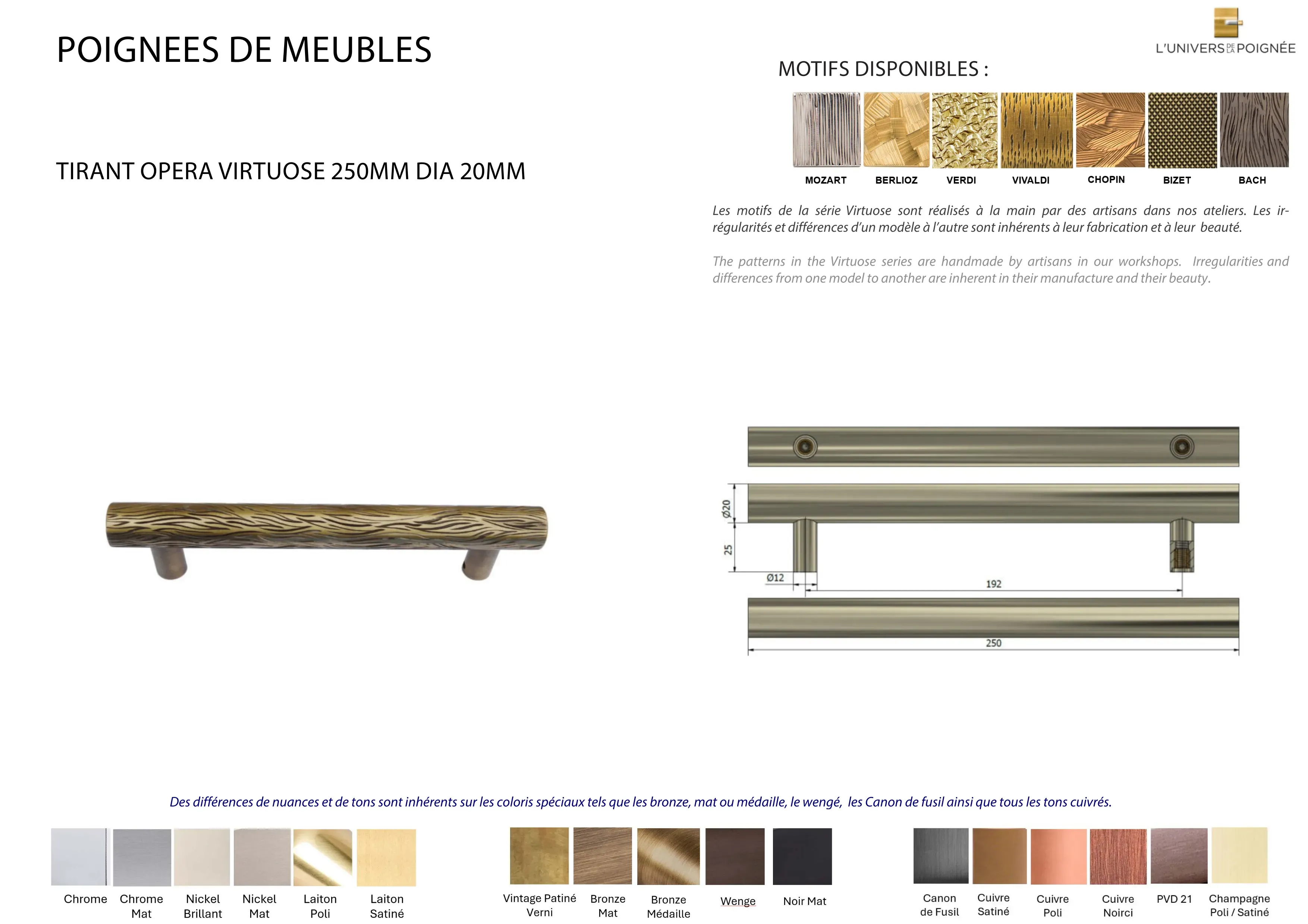 Poignée de meuble OPERA VIRTUOSE dia 20mm L. 250mm