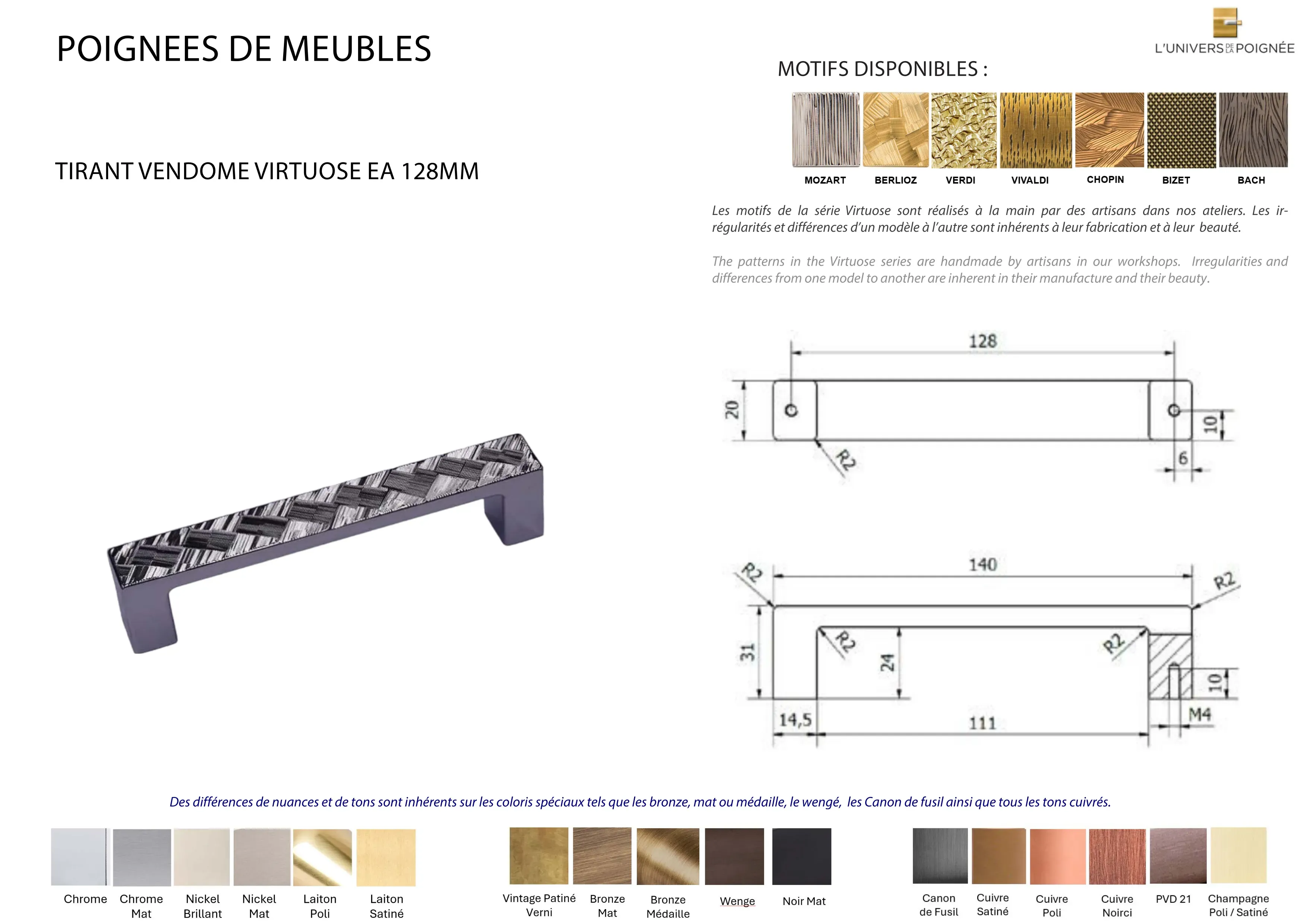 Poignée de meuble VENDOME VIRTUOSE EA 128mm