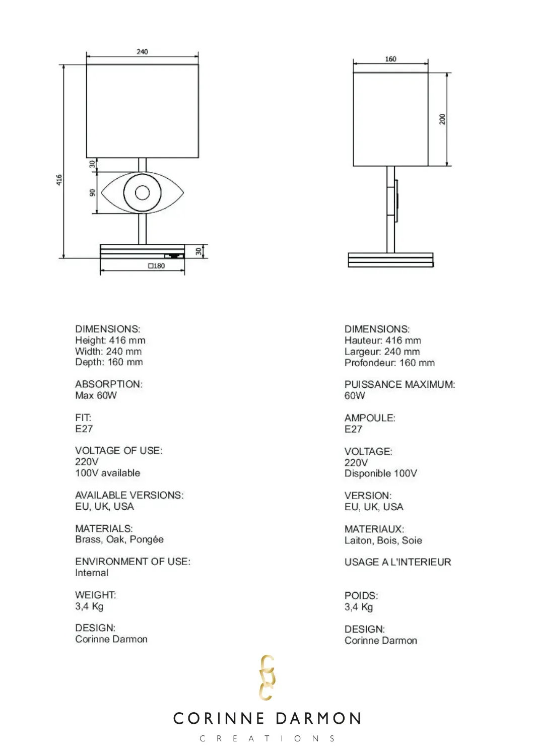 Lampe Oeil Eye Light You mat black or mat et or brillant