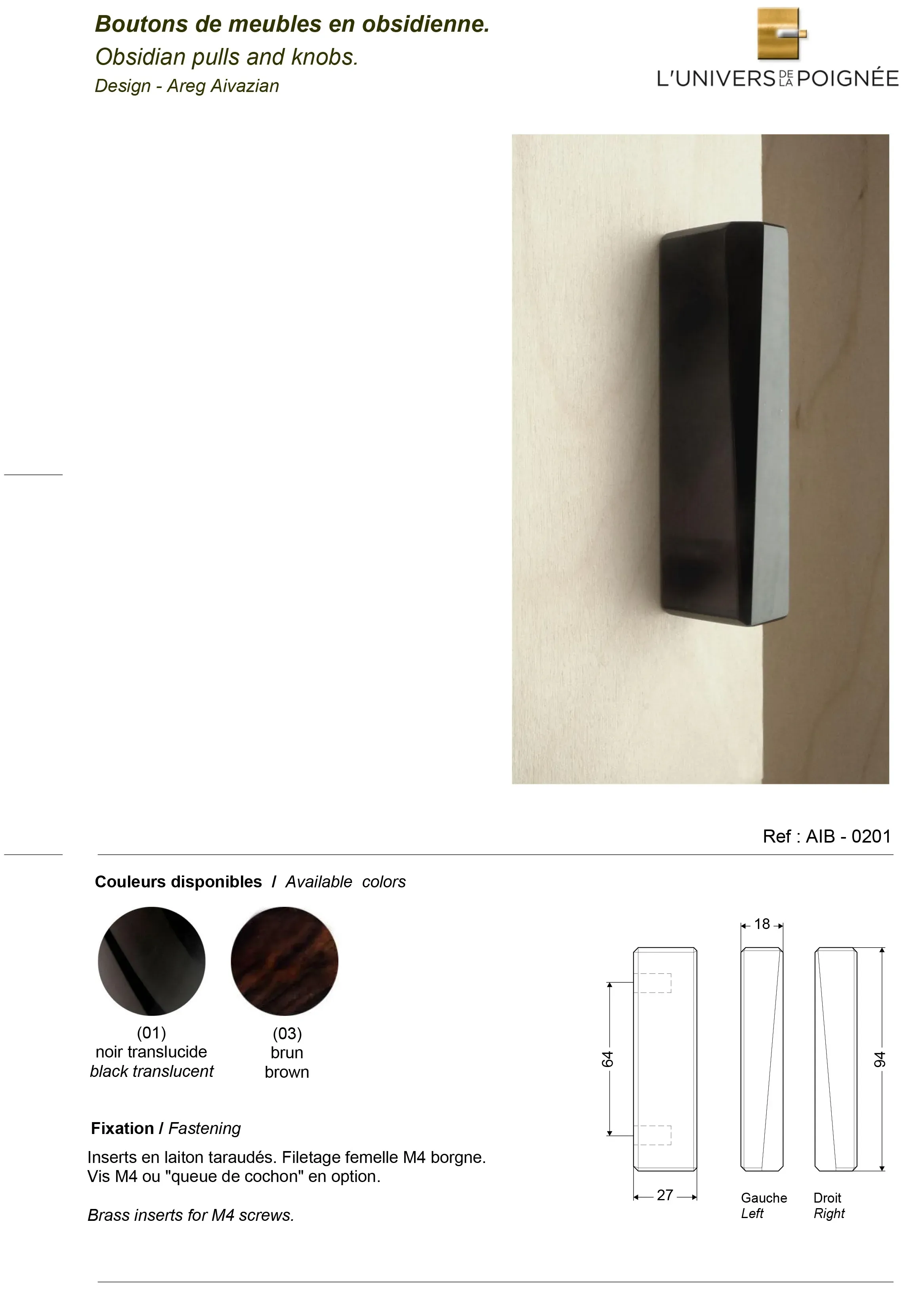 Poignée de meuble FACETTE Verso Obsidienne